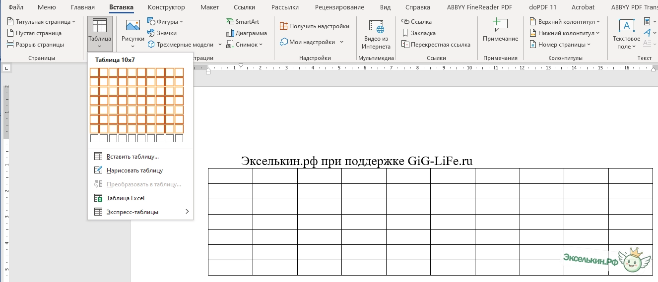 Таблицы: Вкладка Вставка -> Таблица. Не рисуйте сетку вручную! После создания таблицы появятся две новые вкладки («Конструктор» и «Макет»), где можно менять цвета и границы.