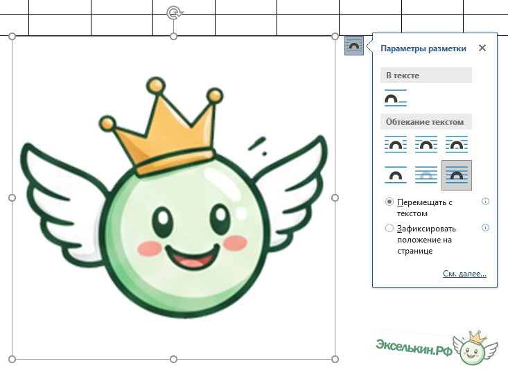 Картинки: Чтобы изображение не «прыгало» по тексту, нажмите на него, выберите значок Параметры разметки и установите «Вокруг рамки» или «Перед текстом».