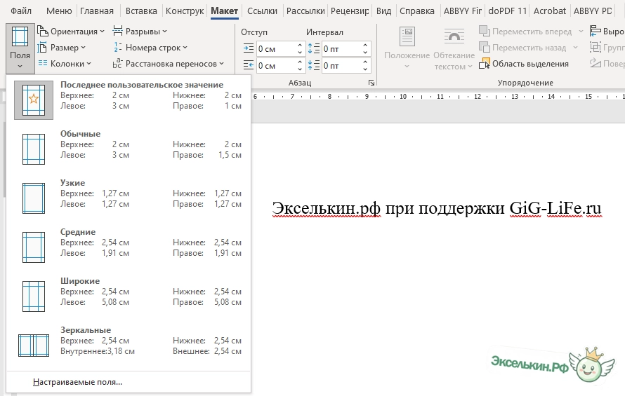 Разметка страницы: Перейдите во вкладку Макет. Здесь настраиваются поля (стандарт — 2 см со всех сторон) и ориентация (книжная или альбомная).